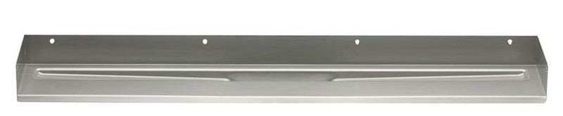 Afløbsarmaturet har tre vægflanger og en gulvflange, og er formgivet ud af et stykke kraftigt 1,5 mm rustfrit stål med bejdset overfladefinish.