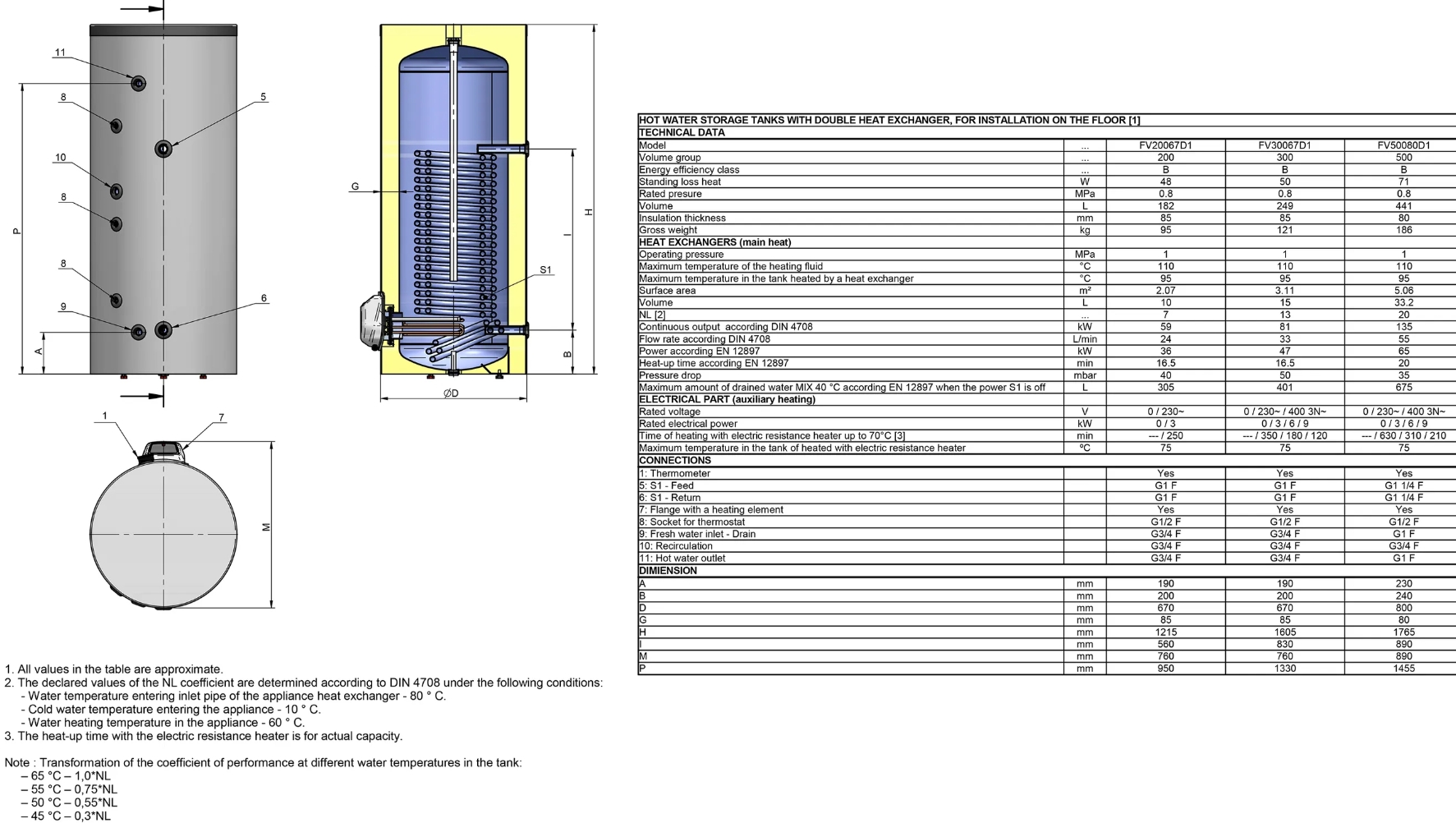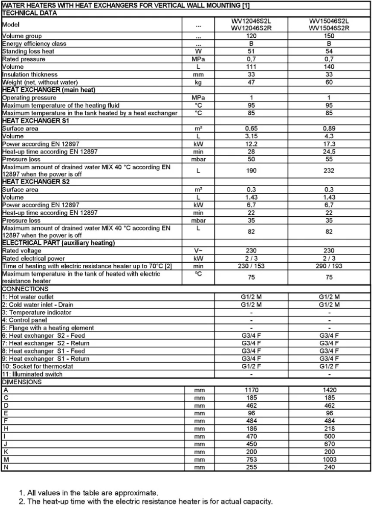 Combi varmtvandsbeholder 150 L - Fritstående med 1 spiral og elektronisk kontrol
