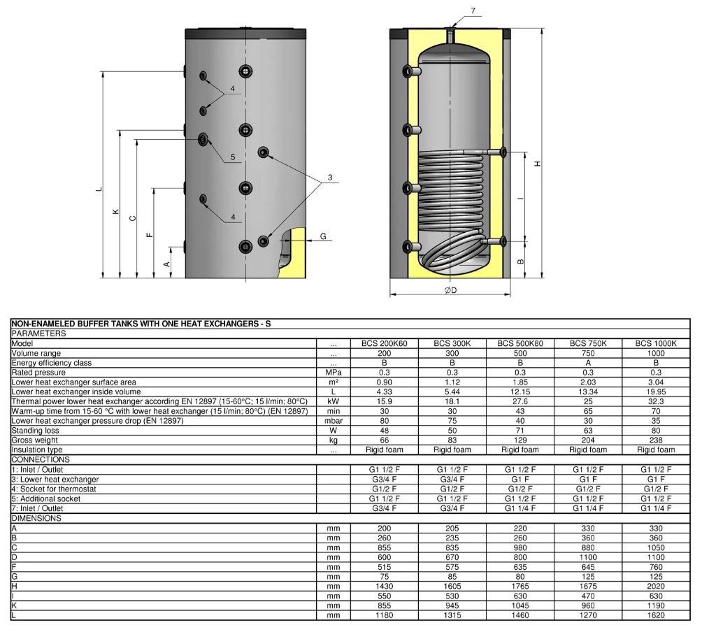 Varmtvandsbeholder - 100 L - Stor spiral - Til varmepumper