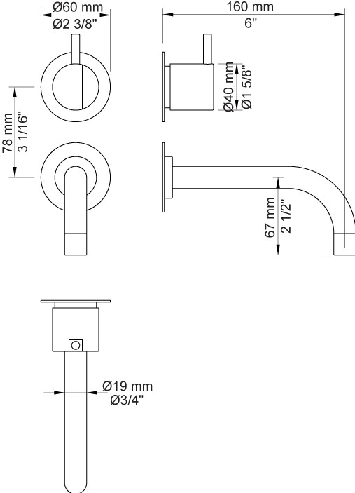 Vola 311 håndvaskbatteri - Krom
