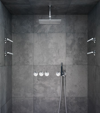 Indbygningstermostat ¾'' med omskifter Sidebruser Loftmonteret hovedbruser T2 Håndbruser med metalslange og holder Rosetter Krom 16 3/4''RG/PEX