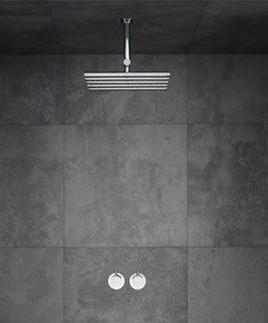 Vola Indbygningstermostat med løs afgangsmuffe Loftmonteret hovedbruser Krom 16 3/4''RG/PEX
