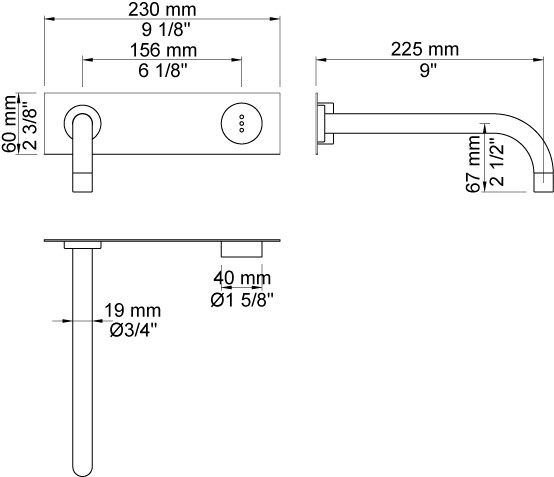 Vola Indbygningsventil til en slags vand, til berøringsfri betjening Fast udløb, 225 mm, ø19 mm Dækplade Krom 16 ½''RG |