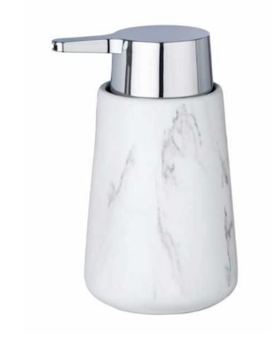 Wenko Adrada sæbedispenser - Marmor keramik Den stilfulde Adrada sæbedispenser udgør en attraktiv tilføjelse til badeværelset. Den er genopfyldelig med flydende sæbe eller lotion, og den kan rumme 330 ml. Dispenseren er dekorativ i det flotte marmordesign, som giver hvert badeværelse en særlig atmosfære. Den er fremstillet af højkvalitets keramik, der sikrer mange års brug grundet den gode kvalitet. Sæbedispenseren har en simpel form med bløde former og afrundede kanter. I Adrada-serien findes også matchende tandbørstekrus, sæbeskål og toiletsæt.