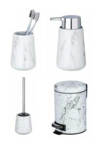 Wenko Adrada tilbehørspakke til bad - Marmor Flot tilbekør i keramik og toiletspand i stål - Flot marmorlook Består af